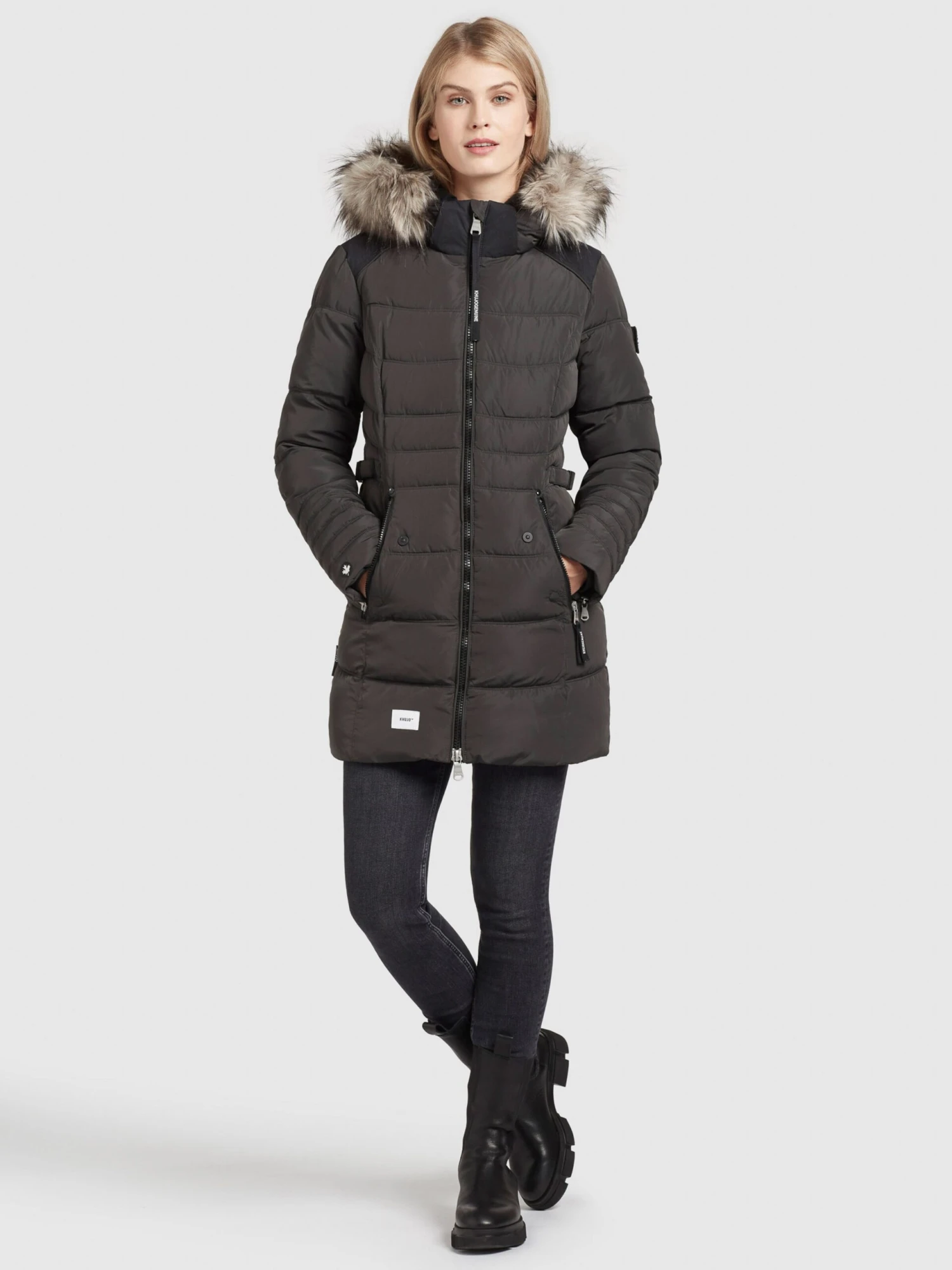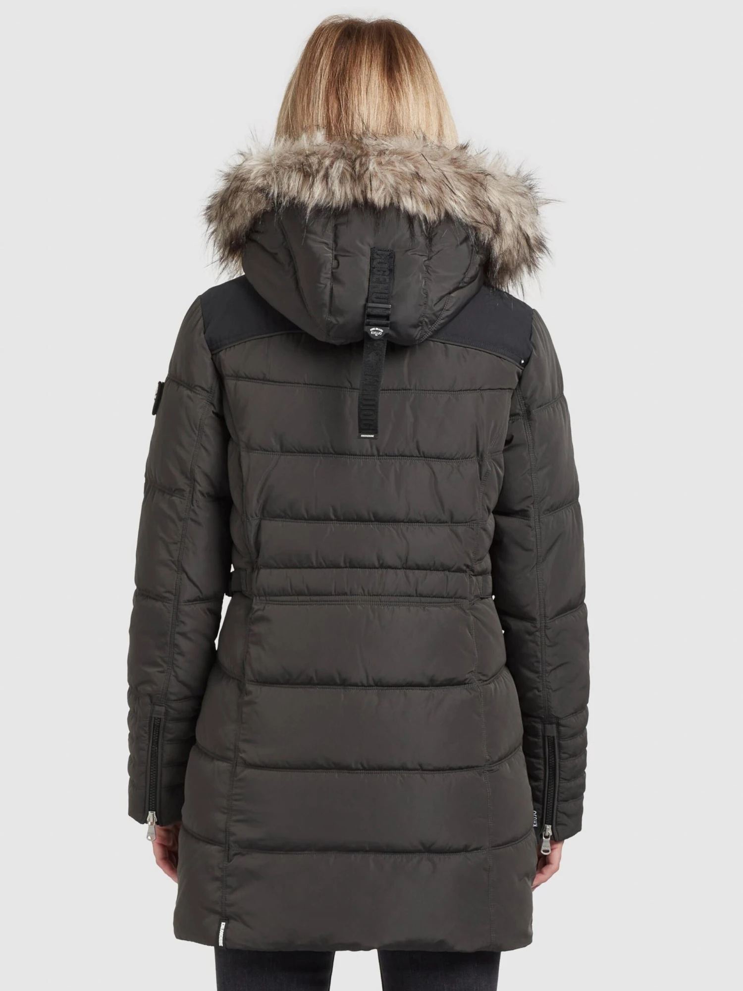 Buitenmateriaal: 100% Polyester – PESVoering: 100% Polyamide (Nylon®)Inzet: 88% Polyester – PES, 12% ElastaanImitatiebont: 70% Modacryl, 23% Polyacryl – PC, 7% Polyester – PESOpvulling: 100% Polyester – PESLand van herkomst: China
